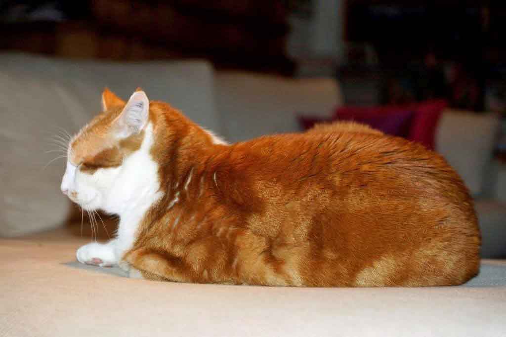 Rosso hatte sich einen Platz selbst ausgesucht, eigentlich lebte er mit zwei anderen Katzen bei einer Familie in der Nachbarschaft, aber er zog es vor, immer wieder eine alleinstehende Dame zu besuchen, anscheinend hat ihm das ruhige Zuhause besser gepasst.