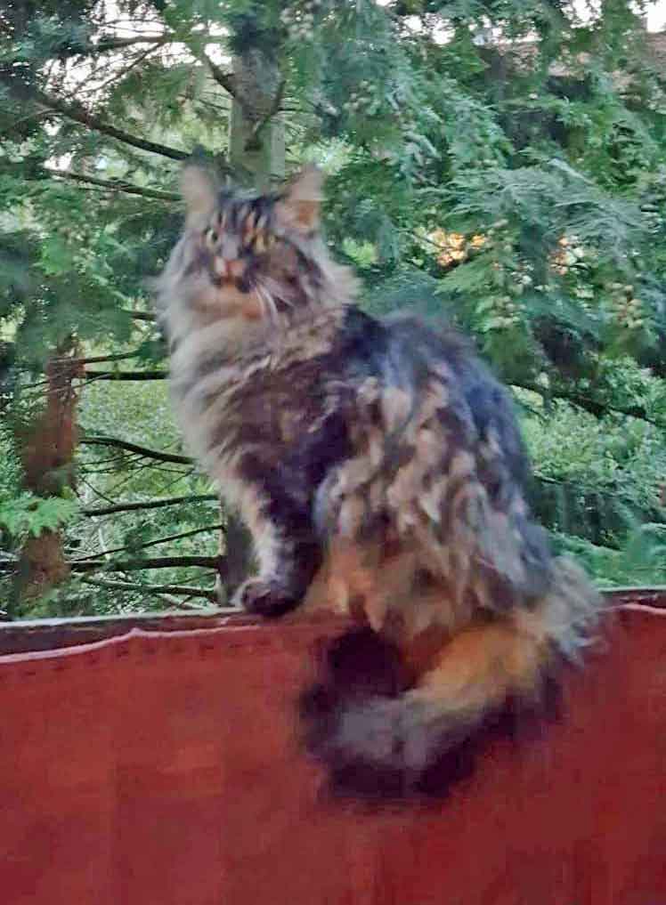 Maine Coon Mix Katzendame Bonita verliert ihr langjähriges Zuhause, weil sie eine leidenschaftliche Mäusefängerin ist und diese teilweise lebendig nach Hause bringt.