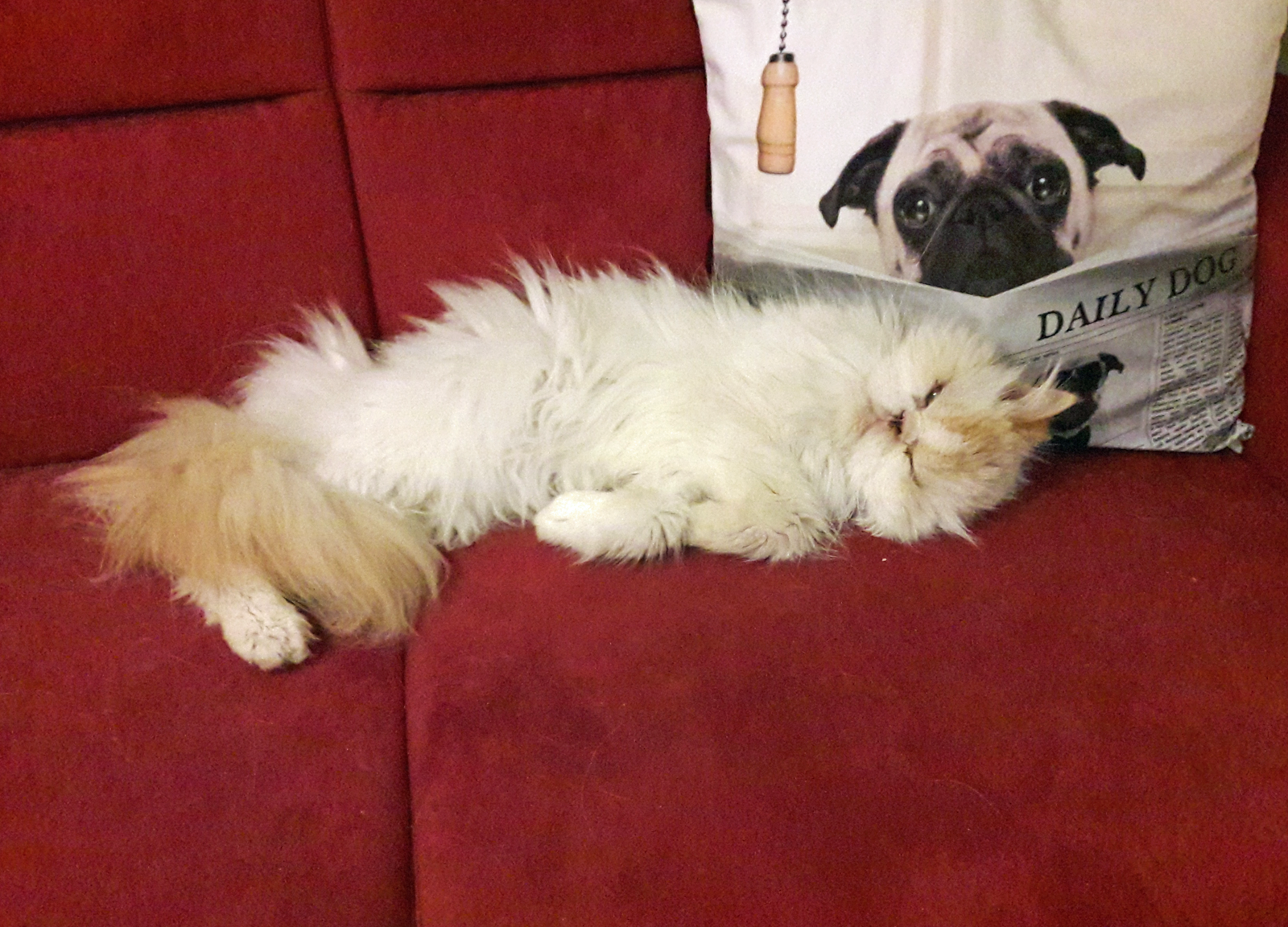 Eddie ist ein ziemlicher „Couchpotato“ und verschläft den Großteil des Tages, weiß es aber sehr zu schätzen, wenn man ihn mit Streicheleinheiten verwöhnt.