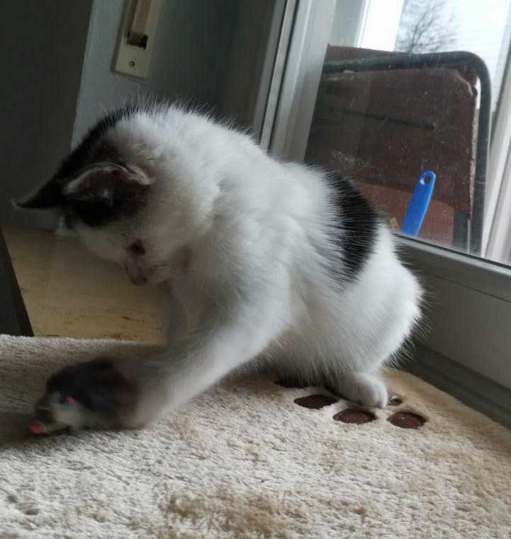 Flora(das schwarz-weiße Mädchen) und Milo (der rot-weiße Kater) sind ihrem Alter entsprechend sehr verspielt, lieben es aber auch zu schmusen.