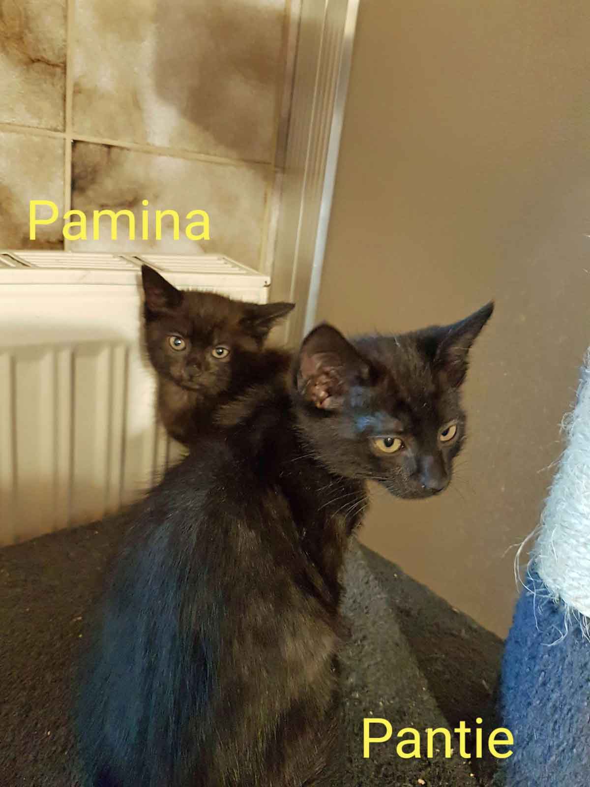 Die entzückenden schwarzen Katzenkinder Pamina und Pantie (weibl./männl.) suchen gemeinsam einen Traumplatz, wo sie lebenslang glücklich sein dürfen.
