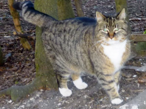 Mit über 25 weiteren „wilden“ Katzen wurde er damals kastriert. Es entstanden drei Futterplätze im Umkreis von ca. 1 Kilometer. Kater Puh hat sich mit seinen „Jüngern“ Wuggi und Hoppsi an einem davon sesshaft gemacht. Diese drei „Musketiere“ sind nun jeden Tag die ersten, die am Futterplatz parat stehen und immer zur gleichen Zeit auf ihr Essen warten. Obwohl jeder Einzelgänger ist, beim Futtern sind sie unzertrennlich. Puh ist der ältere von ihnen und ihr Anführer. „Was Puh macht ist gut, das machen wir auch“ sind sie sich einig. Wenn auch oft scheu und übervorsichtig gegenüber Fremden, lässt er sich von der Hand, die das Futter bringt, gerne streicheln und die Zecken aus dem Fell zupfen. Er bekommt zwei Mal im Jahr eine Wurmkur.